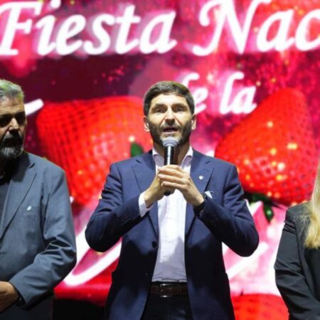 El gobernador Maximiliano Pullaro participó el sábado por la noche de la 66ª edición de la tradicional Fiesta de la Frutilla, en la ciudad de Coronda, donde remarcó que “la única manera de que Argentina salga adelante es si logra producir más”. Acompañado por el intendente Ricardo Ramírez; los ministros de Igualdad y Desarrollo Humano, Victoria Tejeda; de Economía, Pablo Olivares; de Cultura, Susana Rueda; la secretaria de Gestión Institucional del ministerio de Justicia y Seguridad; Virginia Coudannes, y el senador departamental Leonardo Diana, el mandatario provincial recorrió la exposición y conversó con productores locales.